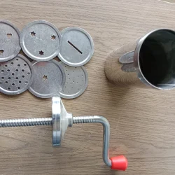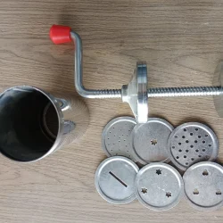 The Stainless Steel Sev Sancha is a durable and easy-to-use kitchen tool for making fresh sev, chakli, and other snacks at home. Crafted from high-quality stainless steel, it ensures long-lasting performance and rust resistance. The set includes multiple interchangeable discs for versatile snack preparation. Its ergonomic design provides a comfortable grip, making cooking effortless and enjoyable.